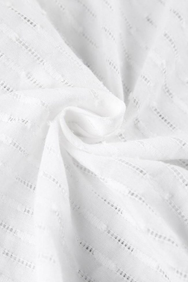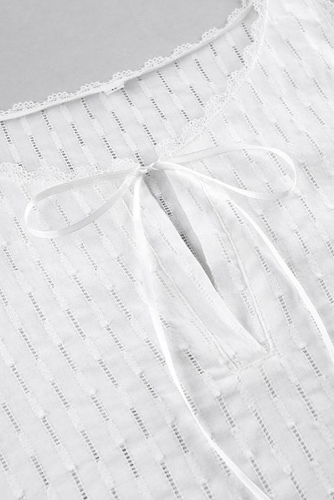 Λευκή hollow jacquard μίνι νυχτικιά με κορδονάκια στο μπούστο. Βγαίνει σε νουμεράκια απο small μέχρι large.