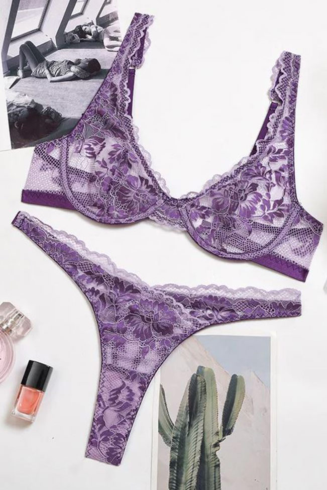 Ρομαντικό lace lingerie σετ φλοραλ μωβ