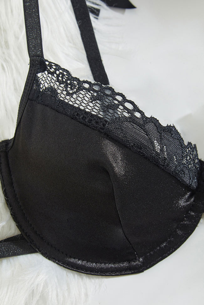 Σατέν μαύρο εσώρουχο με ενσωματωμένες ζαρτιέρες