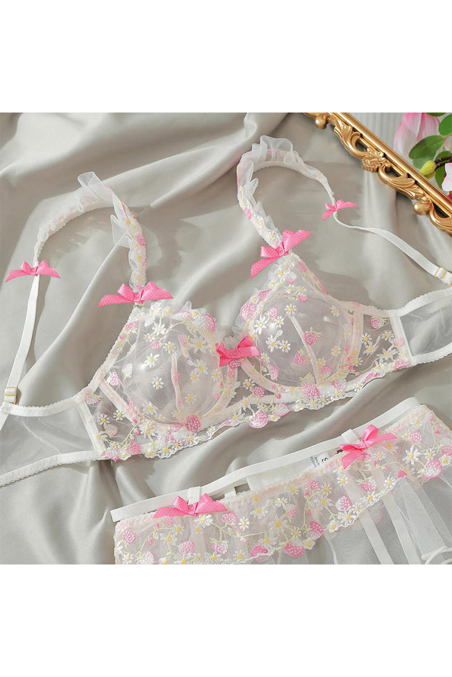 Σετ εσωρούχων με διαφάνεια και κεντημένα λουλούδια